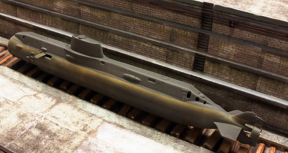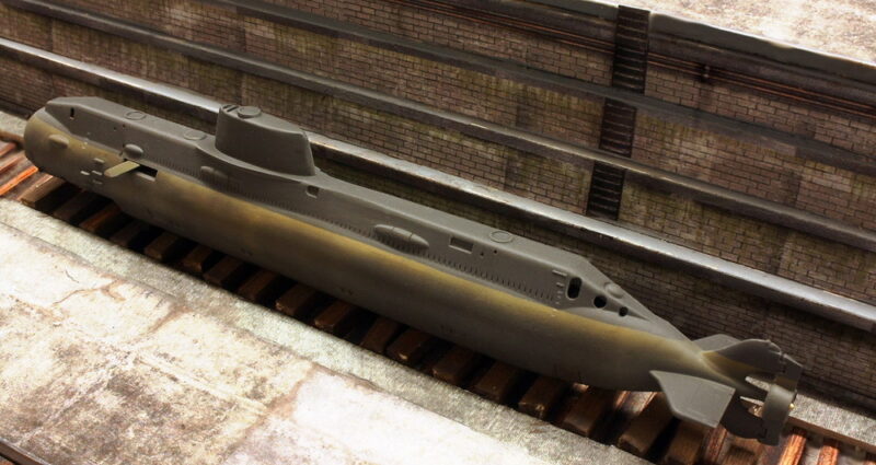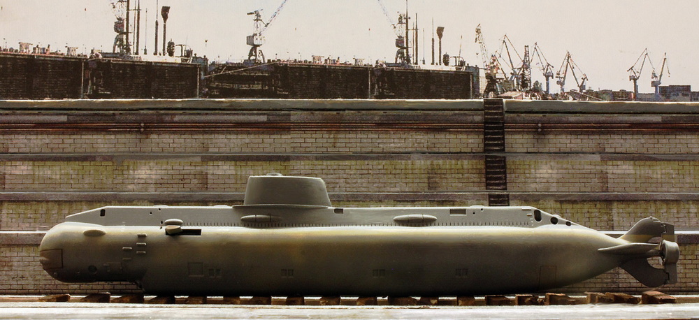 Manche Aspekte des hier vorgestellten U-Bootes müssen im Dunklen bleiben, fällt vieles davon doch noch immer unter streng gehütete Geheimhaltung. Aber selbst jene Fakten, die man als gesichert ansehen darf, zeigen, dass die Fähigkeiten des hier vorgestellten Spezial-U-Bootes tatsächlich einmalig waren und ihre Einsätze es, soviel Dramatik sei erlaubt, an wahrhaft dunkle und lebensfeindliche Orte geführt hatte. Aus dieser obskuren, dafür aber umso spektakuläreren Natur des unter der Bezeichnung „Projekt 1851 Almaz“ laufenden Tiefsee-Bootes habe ich auch meine Idee abgeleitet, wie ich dieses gerade einmal fingerlange Modell darstellen wollte: nicht mit einer, sondern mit zwei Inszenierungen!