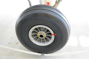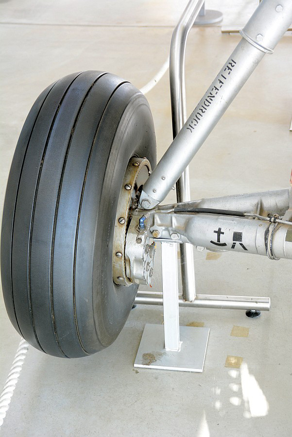 Hauptfahrwerk mit freiliegender Verstrebung vorne auf