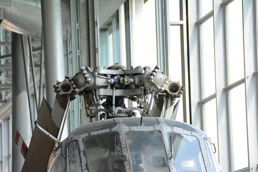 Heckauslegers. Sowohl die Hauptrotorblätter als auch der